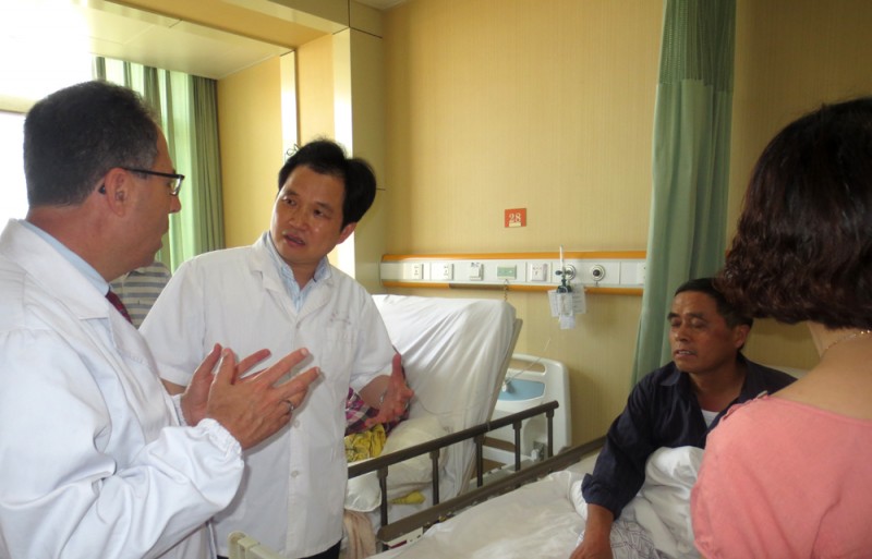 7月5日上午,应我院干部肿瘤科潘跃银主任邀请,比利时布鲁塞尔大学Jules Bordet癌症中心肿瘤内科主任Awada Ahmad教授、护理学院Steppe Veronique教授来院参观交流。Awada Ahmad教授一到病房,就与我院医生展开圆桌讨论,他不仅详细介绍了欧洲肿瘤诊疗的流程、规范与实施细节,尤其对欧洲乳腺癌诊疗现状、临床研究、治疗新理念、新方法进行了细致的阐述,并回答了有关问题。随后Awada Ahmad教授与我院肿瘤科医生进行了疑难病例讨论,并深入病房,与患者交流。我院干部肿瘤科规范严谨的诊疗、优质舒心的护理、整洁舒适的环境给Awada教授留下深刻印象,并给予高度评价。护理学院Steppe Veronique教授与肿瘤科潘玉芹、陈新华护士长就有关肿瘤专科护理进行了交流,并参观指导了干部肿瘤科开展的“输液港”技术。据悉,Awada Ahmad教授是欧洲著名乳腺癌专家,比利时布鲁塞尔大学附属Jules Bordet癌症中心内科主任、乳腺癌中心主任,该癌症中心是欧洲最著名的癌症中心之一,是国际乳腺癌组织BIG的创始单位和现任主席单位。Ahmad Awada教授在乳腺癌诊治、实体瘤药物治疗、抗肿瘤新药临床研究方面造诣很深,在Lancet、NEJM、JCO、Oncologist等高影响因子SCI杂志上均发表有关乳腺癌临床研究论文。