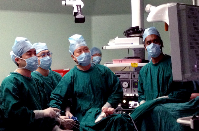 手术于6月29日上午9时在广州中山大学孙逸仙纪念医院准时开始,历时3个小时,圆满结束。整个手术过程术野清晰,分离细致,出血极少,将微创手术的优势发挥到极致。在术中,梁朝朝教授熟练的解剖、精湛的技术及详尽的解说,获得了来自全国各地泌尿外科医生的一致肯定与好评。