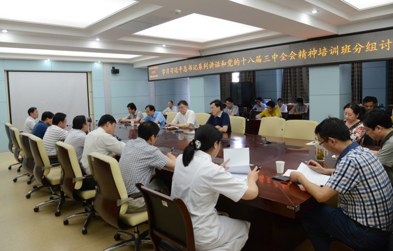 7月3日下午,学校党委书记李俊来院参加学习习近平总书记系列讲话和党的十八届三中全会精神培训班分组讨论。医院领导、各职能处室负责人、各党总支书记参加了讨论会,党委书记梁朝朝主持会议。