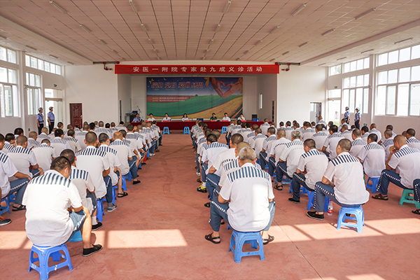 为深入开展警民共建工作,落实对口医疗支援帮扶,依据我院与安徽省监狱管理局签订的警民医疗技术合作协议,6月12日至13日,我院组织了呼吸内科胡先纬副主任医师、骨科华兴一副主任医师、神经内科高建国副主任医师、皮肤科范星副主任医师、肿瘤内科杜瀛瀛主治医师、眼科顾振宇主治医师、消化内科胡静主治医师共8名专家远赴安庆九成监狱开展义诊工作。此次义诊队伍由医务处处长李元海带队,医务处、事业拓展部相关人员参加了此次义诊活动。12日下午,经过四个小时的长途颠簸,我院专家抵达安庆九成监狱。13日上午,经过短暂的对接会议,义诊专家即在监狱管理人员的带领下开展了形式多样的义诊活动。其中,消化内科、呼吸内科、眼科、皮肤科、骨科等科室专家对部分服刑人员开展健康义诊、宣教工作,先后接诊人次达百余人次。普外科张永红博士成功为1名复杂胆囊结石服刑患者实施了手术。神经内科和肿瘤内科专家针对分局民警、职工及社区人员分别作脑血管疾病预防及肿瘤防治的专题讲座,获一致好评。(医务处)