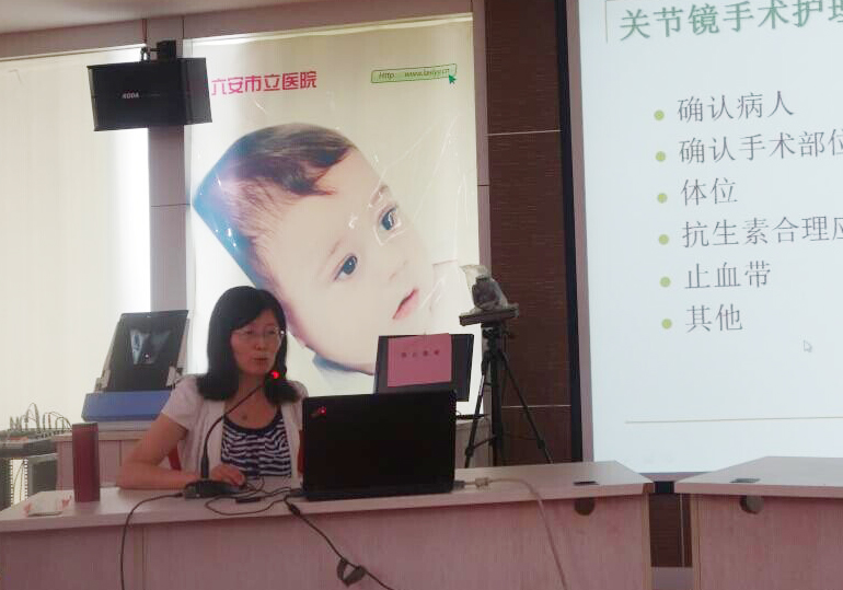 会议期间我院骨科专家与院手术室(二部)护士长王文静、合肥市第二人民医院关节外科主任医师冯瑛琪等就多项目前关节镜实用、热点技术与参会同仁进行了深入而友好地交流,研讨涉及膝关节十字韧带止点损伤,急性膝关节创伤、复发性髌骨脱位、关节镜手术护理配合、髌骨关节疾病角度测量等。会议期间,徐斌教授通过2例关节镜手术示教并借助同声传译与会场参会代表进行了专题讨论。