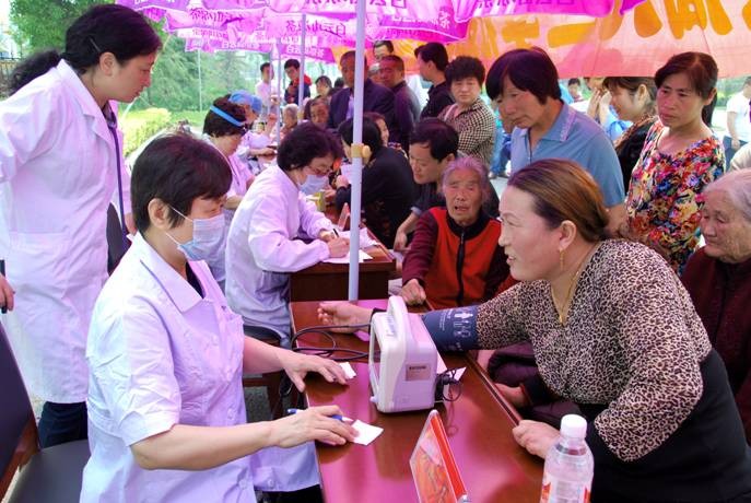 简短的赠药仪式结束后,就诊台被群众围个水泄不通,几位专家一人担当数个学科角色,耐心细致回答了大家的咨询,为患者做心电图、测血压、开处方,示范康复动作,发放预防疾病科普资料、药物,顾不上喝一口水。直到午后,人群才渐渐疏散开去。