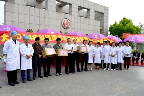 为积极响应安医大2014年卫生科技周系列活动。五月十八日,九三学社安医附院支社组织了肾内、神经外科、心电图、儿、口腔、耳鼻喉、眼科等九位专家,在主委李俊教授的带领下赴中国四大药都之首的亳州市谯城区工业园为当地群众进行义诊、赠药活动。