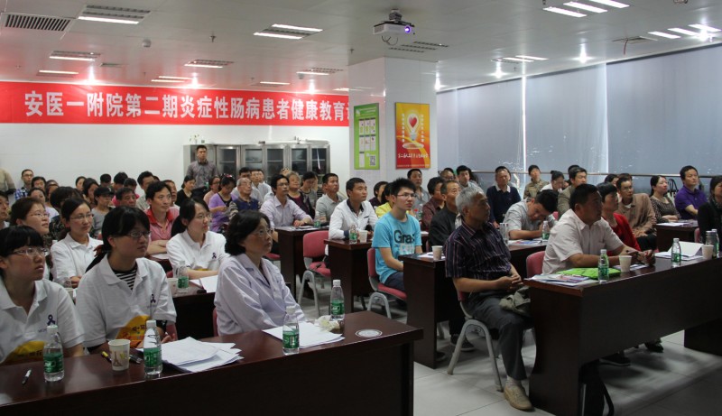 讲座后,包括胡乃中、梅俏、胡静、汪燕燕、钱红梅等在内的医护人员,为大家进行了现场咨询义诊,从诊疗、护理、用药等多方面为IBD患者答疑解惑。整个现场充满爱的同时也传递着积极乐观面对疾病的正能量。消化科炎症性肠病团队还在现场给患者发放了“安医大一附院IBD患者就医指南”和“IBD疾病知识手册”,对IBD患者实行门诊优先,住院优先、检查优先、建立电子档案、定期随访、开通好大夫网站、建立安医大一附院IBD患者QQ群等一系列长期、专业、细致的措施 。
