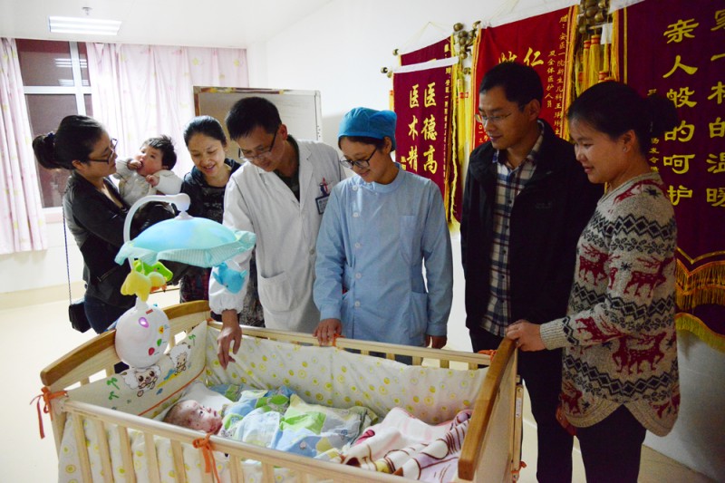 4月12日晚,在我院儿科医生项云的呼吁下,来自万科金色名郡的热心居民们自发给我院新生儿科养育了11个月的弃婴“小乖”送去了奶粉、尿不湿、被子、床、玩具等物品,并来看望小乖,希望他健康平安的长大。