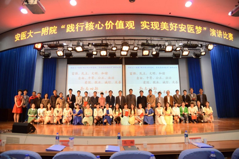 4月16日下午,医院举行“践行核心价值观,实现美好安医梦”演讲比赛。党委书记梁朝朝、院长余永强、副院长鲁超、党委副书记戴晓支及相关职能处室负责人出席了本次活动。