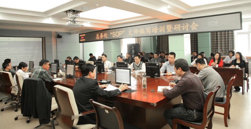 3月28日下午,总务处召集班组长以上人员在第二会议室集中进行了“SOP”文件的编写培训与研讨,分管院领导鲁超副院长参加并讲话,会议由总务处赵南岗处长主持。