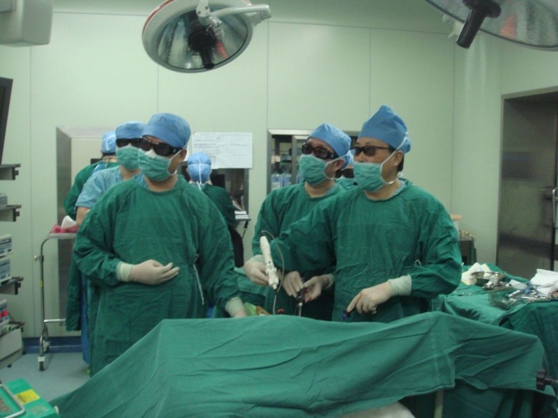 3月1日,首届3D腹腔镜研讨会在北京大学第三医院举行,来自全国各省市近200位专家、医师参加会议。我院泌尿外科梁朝朝教授应邀主持研讨会、介绍3D腹腔镜手术的经验与体会并为会议做手术演示。梁朝朝教授与天津医科大学总医院李黎明教授及北医三院马璐淋教授等演示了5台精彩的3D腹腔镜手术。会议安排梁朝朝教授完成腹腔镜肾癌根治术,尽管患者已经81岁,过度肥胖,全身情况较差。但是,由于手术者熟悉的解剖结构和娴熟的操作技术,不足二小时,手术顺利结束。整个手术过程出血不到10ML,会场多次响起热烈的掌声。