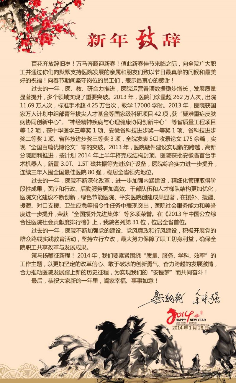 党委书记 梁朝朝 院长 余永强 《新年致辞》