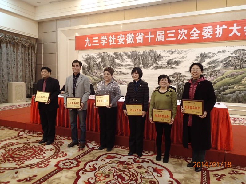 2014年1月18日,九三学社安徽省委会第十届三次全委扩大会议在肥召开。会上,九三学社安医大基层委荣获2013年度“社务工作先进基层组织”, 九三安医附院支社荣获“社会服务先进集体”,曹云霞教授、高潮兵副主任医师荣获“建功立业先进个人”,李俊教授获得优秀社务工作者、宣传工作先进个人、百名专家乡村学堂讲科普活动优秀专家等多项荣誉,许黛薇副科长获得“社会服务先进个人”。