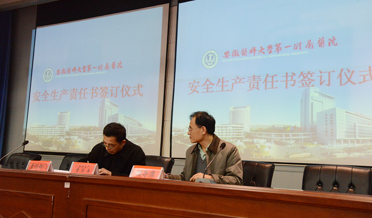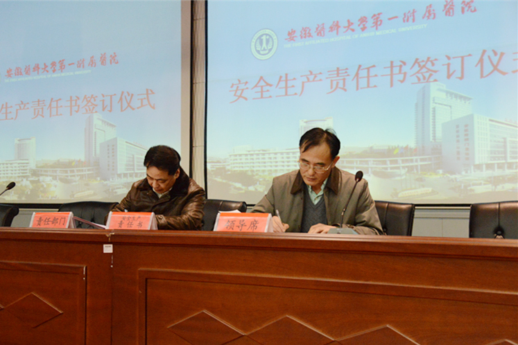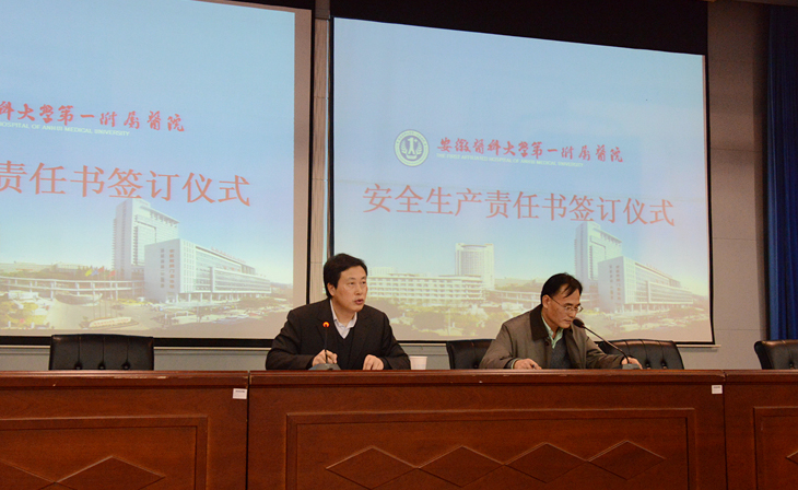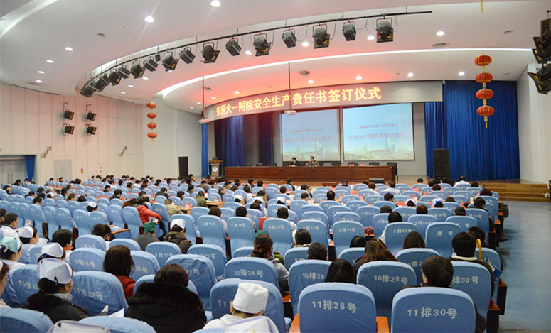 1月8日下午,医院在会议中心举行安全生产责任书签订仪式,院长余永强与临床、医技科室负责人、相关处室负责人代表签订安全生产责任书。院党委书记梁朝朝主持签字仪式,并发表重要讲话。全院副科级以上干部、临床医技科室主任、护士长等300多人参加会议。