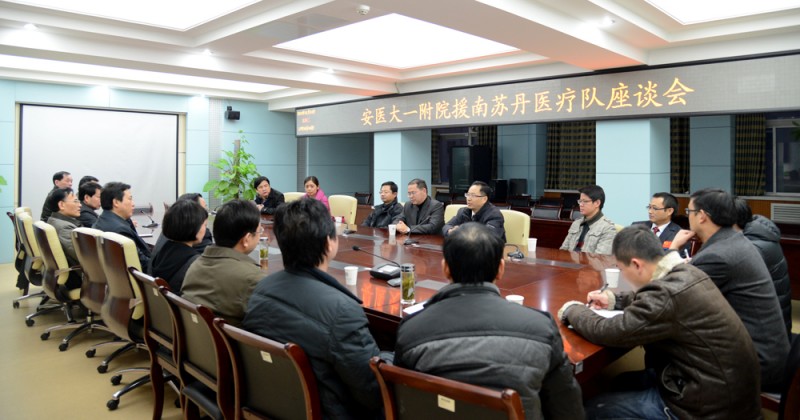 2012年12月底,按照卫计委和省卫生厅统一部署,我院牵头组建的中国(安徽)首批援南苏丹医疗队经过为期四个月的封闭培训后,抵达南苏丹首都朱巴,执行为期一年的卫生援外任务。援南苏丹医疗队全体队员克服设备极其简陋、条件极其艰苦、安全局势极其严峻等多种困难和危险,团结协作,发扬援外精神,创造性地开展工作,得到了驻南苏丹领事馆、中资企业、当地华人和南苏丹人民的一致认可与好评。