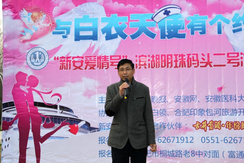 戴晓支在致辞中说,安医大一附院是省内规模最大、集医疗、教学、科研、管理、康复和预防于一体的综合性现代化医院,我院与新安晚报、安徽网的再度携手,联合举办的这次联谊活动,充分说明了我院不仅关注提高医疗技术、提升服务品质,也非常注重医院的文化建设,关心、关注青年职工的文化生活,通过此次活动为青年职工的交友、对外交流搭建平台。参加活动的白衣天使都是医院的业务骨干、技术精英,相信她们在生活上也会成为好的家庭成员,希望在场的男嘉宾抓住这次难得的机会,找到、找对、找好自己的终身伴侣。最后,戴晓支表示,在2014年元旦来临之际,预祝大家在新的一年里身体健康、合家欢乐、万事如意,预祝此次“新安爱情号”活动圆满成功。