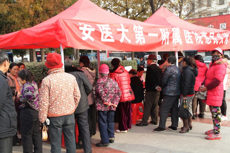 进社区活动受到居民热情欢迎,不少早早在社区广场上等候的居民说:“早就来占座了,就是为了让安医的专家给看看病。”在两个多小时的义诊时间里,现场人头攒动,卧牛山街道南巢社区的市民热情的排成长队,等待专家接诊。我院专家不惧严寒,以高度的责任心和爱心,认真为社区居民答疑解惑,义诊活动中专家共接诊两百多人次,安徽电视台科教频道记者对我院专家义诊活动进行了全程跟踪采访。