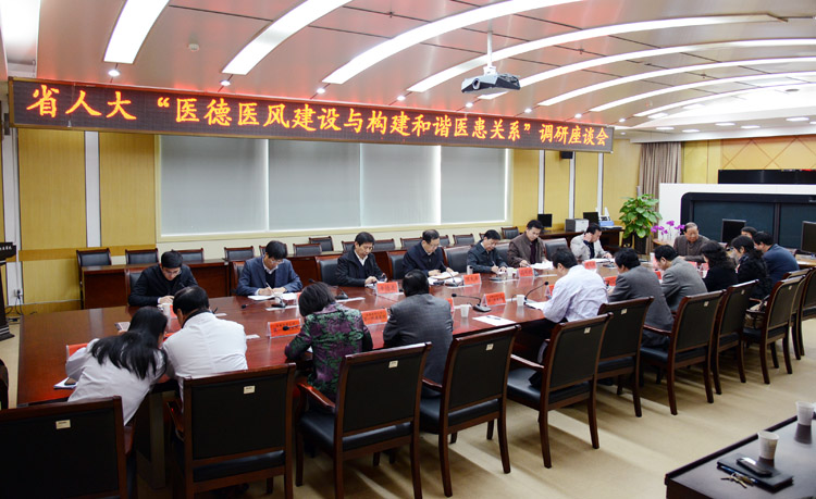 11月19日上午,省人大常委会副主任陈先森、省人大常委会委员、科教文卫委副主任委员高开焰、省人大代表、科教文卫委副主任委员韦大伟等,在卫生厅厅长于德志的陪同下,来我院进行医德医风建设与构建和谐医患关系的调研座谈。院领导梁朝朝、余永强、金小干、王润玲等接待了省人大调研组一行。学校党委书记李俊陪同省人大一行赴临床科室实地调研。