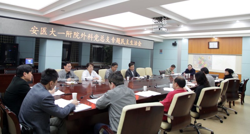 11月5日晚7:00,外科党总支在行政楼第二会议室召开党的群众路线教育实践活动专题民主生活会。院联系领导梁朝朝书记、院督导组负责人、机关党总支书记丁长明、督导组成员李俊、活动办成员姚育尚参加了会议。会议由外科党总支书记余宏铸主持,外科党总支全体委员、支部书记参加了会议。