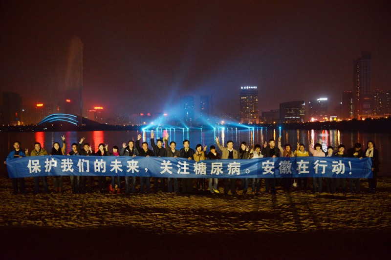 2013年11月13日晚8时,安徽省医学会内分泌糖尿病分会“蓝光行动”在合肥市政务文化新区的天鹅湖畔举行,为2013年“联合国糖尿病日”系列活动拉开帷幕。美丽的蓝色灯光照亮了周边的体育场、大剧院、市政办公中心等多处建筑。我院内分泌科王长江、章秋等医务工作者参加了本次活动。中华医学会糖尿病分会要求各省分会与国际同步,在“联合国糖尿病”日前后用蓝光照亮各地标志性建筑物来诏示公众携手抗击糖尿病的决心,使更多人关注糖尿病、预防糖尿病的发生发展,并以此举号召青少年从小要养成良好的健康生活习惯,控制糖尿病患病率逐年增加和年轻化的趋势,保护我们的未来。