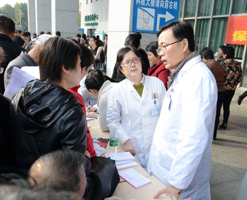 14日下午2时,安徽省医学会内分泌糖尿病分会在安徽医科大学一附院门诊大楼前举行了大型义诊活动。今年国际糖尿病日活动主题为“糖尿病教育与预防”,口号是“保护我们的未来:关注糖尿病”。安徽省医学会内分泌糖尿病学分会主任委员王长江,副主任委员任安及来自安医大一附院、安医大二附院、安徽省立医院、安徽省中医药大学附院、合肥市一、二、三院,安徽省立二院、解放军105医院等医院的内分泌专家以及省糖尿病护理学会的护理专家共约三十多人参加了亲临现场进行义诊和咨询,活动内容包括糖尿病知识宣传及普及,发放糖尿病教育手册,糖尿病咨询等,免费测血糖、血压,现场服务患者约五百余人。