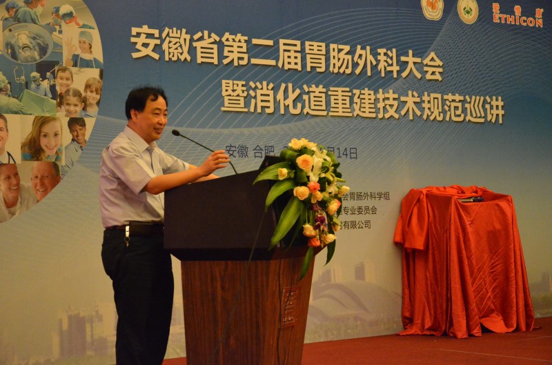 会议主要分三方面内容:1.安徽省抗癌协会大肠癌专业委员会换届活动。安徽省大肠癌专业委员会是在我国知名教授孟翔凌教授辛勤工作的带领下,团结和动员全省大肠癌防治工作者,促进大肠癌防治知识和技术的普及和推广,规范大肠癌的诊疗行为,降低我省的大肠癌发病率和死亡率。此次活动选举并产生了41名委员,孟翔凌教授为主任委员。2. 安徽省医学会外科学分会胃肠外科学组第二次胃肠外科学术会议,会议由安徽省胃肠外科学组组长孟翔凌教授主持,邀请了联邦德国Oliver Mann 教授、韩国Do教授进行学术演讲,介绍了胃肠外科在国外的最新进展,并在会议中进行中英文同步翻译。会议同时与中华医学会外科学分会合作举办“消化道重建技术规范”全国巡讲,国内多位知名教授进行了精彩讲解。3.举行了我院微创外科培训基地揭牌仪式,我院黄禄茂副院长及外科主任孟翔凌教授参加了揭牌仪式。
