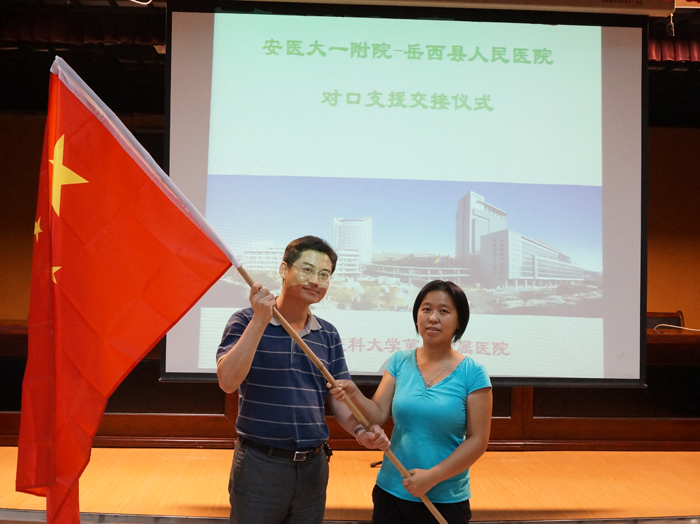 岳西县医院举行了欢迎仪式。岳西县医院彭衍胜院长、徐万佳副院长分别发表了热情洋溢的讲话,他们对我院新一批帮扶专家的到来表示热烈的欢迎,并对上一批驻点专家的工作给予了充分的肯定。李元海处长讲话指出,岳西县医院与安医一附院的对口帮扶关系建立由来已久,在双方的共同努力下,岳西县医院在医院管理和医疗服务能力均有了质的飞跃,被卫生厅评为二甲医院、重症医学科顺利开诊、普外科获评安庆市重点学科,“看病难”和“看病贵”问题也得到了一定程度的缓解,希望继续将这种合作关系向更深层次延伸,创新帮扶形式和内容,为老区人民的健康保障做出贡献。