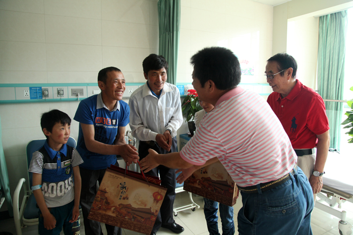 8月20日上午,合肥市台商协会吴安国会长、谭寿荣董事长率领台商协会代表一行,前往我院心脏外科、心血管内科,看望即将出院的西藏先心病儿童。