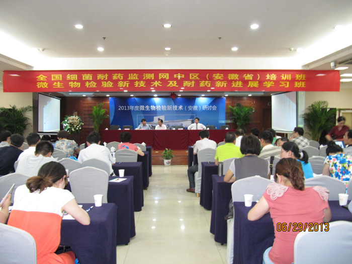 由我院检验科主办的“病原微生物检测的新技术和新进展”学习班于6月29日~7月1日在安徽省合肥市丰乐国际酒店成功举办,并圆满结束。学习班邀请了安徽省卫生厅费勤福处长、安医大一附院费广鹤院长出席开幕式,由李家斌教授、张秀珍教授(卫生部北京医院)、黄海辉教授(上海华山医院)以及徐元宏教授、马筱玲教授、王中新、沈继录等国内知名学者授课,分别讲授了病原检测进展及价值、细菌耐药性检测存在的问题、血培养分析仪在临床中的应用痰培养标本评估、操作方法及结果解读等内容。