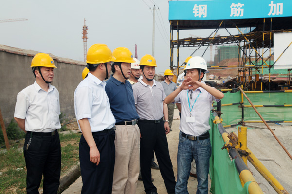 6月14日下午,院党委书记梁朝朝、纪委书记王润玲、党委委员、党委工作部部长高长林一行来到高新分院建设现场检查指导工作,看望和慰问建设指挥部一线工作人员,并听取了项目建设进展情况的汇报。