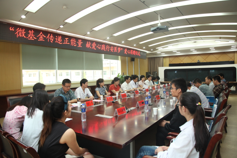 6月14日上午,医院在干部保健中心二楼会议室举行了“微基金传递正能量 献爱心践行安医梦”的捐赠仪式。校常务副校长江敏,院党委书记梁朝朝,院纪委书记王润玲、第一临床学院第二党总支书记黄朝晖等出席仪式。参加活动的还有校第一临床学院第二党总支及我院党委工作部、团委、儿科等相关部门负责人,以及第一临床学院二总支“东南风”医学生爱心社的本硕同学们。