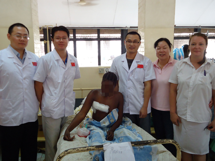 手术整整经历了3个多小时,由于当地气温高、温差大,加上手术室基础设施简陋,所有参加手术队员都是汗流浃背。但他们一直等到病人安全回到病房,保证术后医嘱准确执行后,才披着夕阳、拖着疲惫的身体返回驻地。为确保治疗成功,考虑到患者术后没钱买药,营养也很差,治疗小组迅速形成意见,将队里备用的药物拿出来,连护理工作都详细指导对方处理,甚至亲自为患者换药,指导患者快速康复的理念,有的队员甚至将自己早餐省下的鸡蛋带给患者。在中方医疗队的精心呵护下,患者已经基本痊愈,生活和劳动能力正在迅速恢复。