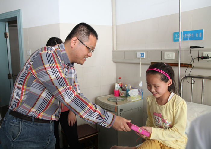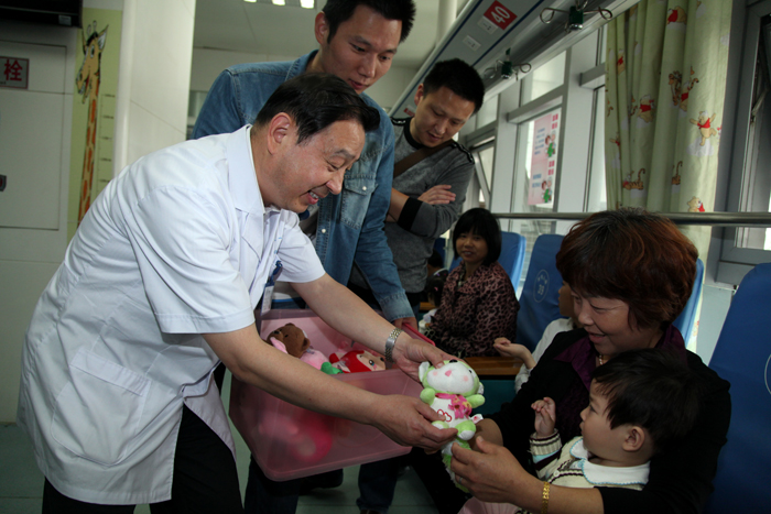 在绩溪路门诊部儿科输液厅,门诊部主任李维荣、院团委书记黄尧、副书记颜蕴文及院团委有关人员也为前来输液就诊的小病人送上了爱心小礼物,鼓励大家不怕病痛,祝愿大家早日康复。(团委)