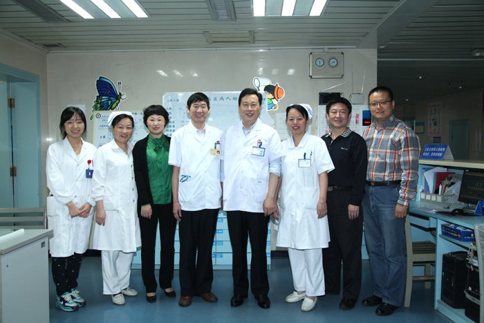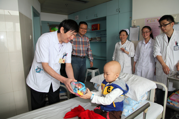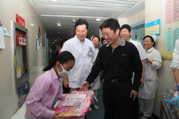 5月31日上午,院党委书记梁朝朝、纪委书记王润玲、党委委员、党委工作部部长高长林、团委书记黄尧等来到儿科病房,在儿科王亚亭教授、儿科护士长唐玉霞、儿科二病区护士长蒋慧珍及院团委有关人员的陪同下,看望慰问住院小朋友们,向他们致以节日的问候。