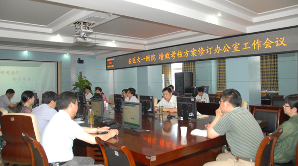 5月14日上午,医院绩效考核方案修订工作组会议在行政楼五楼第二会议室召开,会议由人事处处长吴晓莉同志主持,计财处、护理部、医务处等部门的相关人员参会,会上大家各抒己见,踊跃发言,利用多媒体针对医院的现行绩效考核方案中存在的实际问题进行了广泛和深入的讨论,并对考核方案的修订提出了很多有建设性的意见。