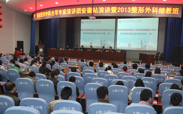 3月30日,西京医院整形外科全军专家巡讲团安徽站演讲暨2013整形外科继教班在我院举办,继教班邀请了第四军医大学西京医院整形外科教授郭树忠、扬力、夏炜等七位专家前来授课,参会代表达200余人。副院长费广鹤在开幕式上致欢迎词,并代表医院祝贺继教班成功举办。继教班由我院整形外科副主任李小静主持开幕式,西京医院整形外科教授郭树忠、我院教育处处长李元海、省立医院整形外科主任王明刚、安医二附院整形外科主任曹东升、我院整形外科专家宁金龙等参加开幕式并在主席台就坐。