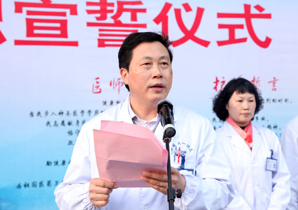 随后,副院长费广鹤、李家斌分别带领医生、护士庄严宣誓。