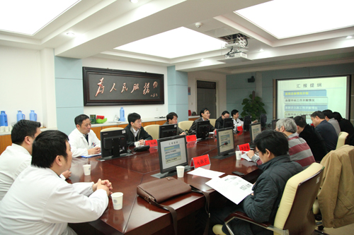 会上,余永强院长对我院总体情况及外周血管介入工作开展情况进行了专题汇报。卫生厅医政处副处长吴振宇代表卫生厅对专家组的到来表示热烈欢迎,并希望专家组能够多提宝贵意见,帮助安徽省将外周血管介入诊疗技术提高到一个新的平台。随后专家组实地查看了血管外科和放射介入科,并对有关外周血管介入诊疗技术的病历等材料进行检查。