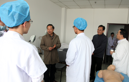 3月12日上午,大学副校长胡志、教务处处长孙业桓一行来我院,看望筹备参加第四届全国高等医学院校大学生临床技能竞赛的培训师生并指导培训工作。我院院长余永强、院党委委员、护理部主任李伦兰、教育处处长李元海、培训专家组刘弋、王爱玲、张泓及教育处有关人员参加了会议。