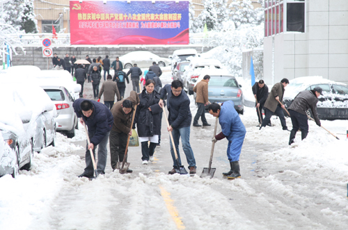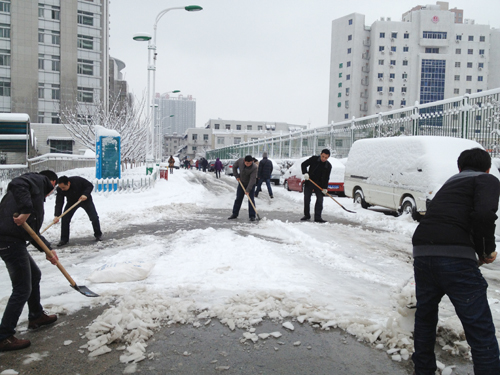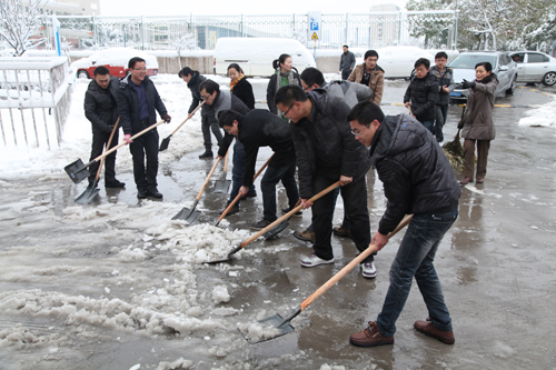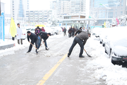 为确保节后正常的医疗秩序,保证病人通道和道路畅通,2月19日早上8:00,医院领导行政后勤干部群众、组织研究生积极分子,清扫院内各路段的路面积雪。一个半小时的清扫过程中,大家顶着寒风,铲的铲,扫的扫,一片热火朝天的景象。
