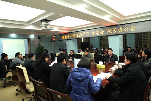 2月19日下午,医院在行政楼第二会议室举行新年第一次党委中心组理论学习会,系统学习了国家卫生部和省卫生厅2013年卫生工作要点、卫生厅和安医大关于改进工作作风、密切联系群众实施意见。院党委书记梁朝朝主持会议并通报医院党委2013年主要工作思路,院长余永强通报医院行政2013年主要工作思路,班子成员、党总支书记、各职能部门主要负责人和党群部门负责人参加了会议。