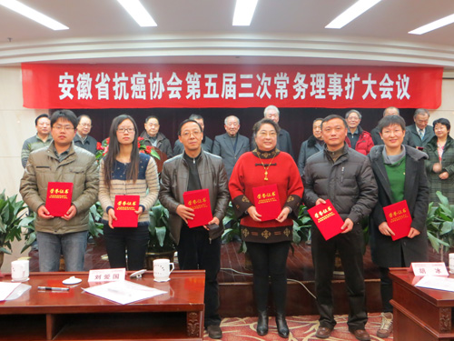 2013年1月12日下午,安徽省抗癌协会五届三次常务理事会扩大会议在合肥省人大会议中心召开。为了规范协会所属团体的管理,促进所属团体各项活动的开展,安徽省抗癌协会对各类专委会和各市抗癌协会进行评比表彰。会上进行无记名投票。我院肿瘤细胞室、安徽省抗癌协会临床细胞学专业委员会主委李俊教授和肿瘤内科、安徽省抗癌协会护理专业委员会主委潘玉芹护士长荣获安徽省抗癌协会2012年度“先进个人奖”。据悉本次活动全省共评选出6名“先进个人奖”。 (肿瘤内科)