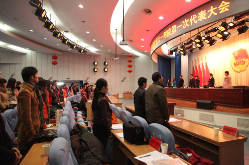 2012年12月30日,共青团安徽医科大学第一附属医院第一次代表大会闭幕式在内科医技楼四楼召开,院团委副书记颜蕴文主持会议,会上通过了关于团委工作报告的决议。