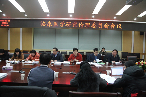 2012年12月11日晚,医院在干二楼会议室召开临床医学研究伦理委员会会议。会议由临床医学研究伦理委员会副主任委员吴三兵主持。