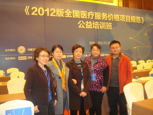 11月18日至20日,根据安徽省卫生厅、安徽省物价局安排,我院五位临床医疗及价格管理专家前往杭州代表安徽参加全国医疗服务项目价格培训会。我院专家组由经管办王洪英主任带队,儿科鹿玲主任、超声科王玲主任、肿瘤细胞室李俊主任以及经管办副主任崔蔚旻一行前往。