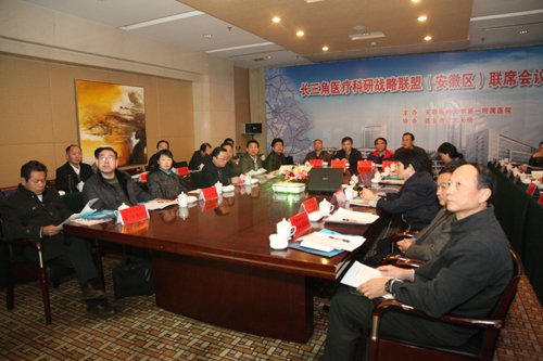 11月16日下午,由我院主办的长三角医疗科研战略联盟(安徽区)联席会议在合肥召开。来自合肥、蚌埠、阜阳、芜湖、安庆、铜陵等16个地市的20余家三级医院参加会议。安医大副校长朱启星、上海市科学技术发展交流中心国内合作处副处长耿东辉、联盟秘书处朱学东教授等出席会议并讲话,会议由院长余永强主持。