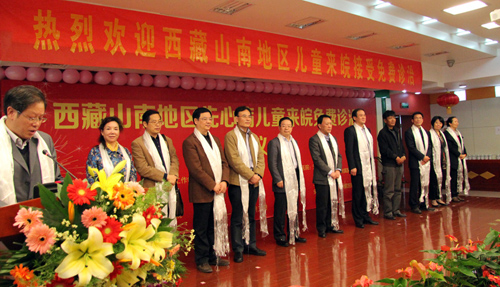 11月5日上午,我院院长余永强、副院长金小干代表医院参加了省政府召开的西藏先天性心脏病儿童来皖治疗欢迎仪式。仪式后,医院驱车将6名孩子接到了我院心血管内科。在心血管内科召开了简短的欢迎会,欢迎会上,余永强院长表示,医院上下高度重视,不仅抽调最优势的医疗救治资源,还迅速组建了领导和专家小组,开辟了爱心专治病房,开通了救治绿色通道,是为确保孩子们就医过程畅通无阻、优质高效。