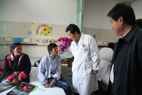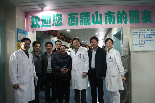 11月7日上午,院党委书记梁朝朝、副院长费广鹤、院党委委员、党委工作部部长高长林及相关职能处室负责人一行来到心内科病房看望来我院就医的西藏先天性心脏病患儿们。