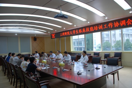 9月27日下午,由大学教务处牵头,第一附属医院、附属省立医院和第二附属医院大学生临床技能培训工作协调会在我院召开。胡志副校长、教务处孙业恒处长、我院费广鹤副院长、教育处李元海处长及省立医院教育处杨静处长、二附院金树副院长出席了会议,各有关单位人员参加会议。