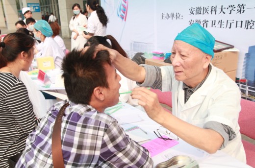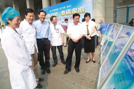 今年9月20日是第24个全国“爱牙日”,活动主题为“健康口腔,幸福家庭”,副主题为“关爱自己,保护牙周”。为了更好地宣传口腔卫生保健知识,9月20日,由安徽省卫生厅疾病控制局、安徽医科大学第一附属医院、安徽省卫生厅口腔卫生中心联合举办的2012年全国“爱牙日”大型义诊活动在我院绩溪路门诊广场举行。安徽省卫生厅厅长高开焰、王宇铭副巡视员一行亲临现场慰问参加义诊的医务人员,医院党委书记梁朝朝,院长余永强,医院口腔医学专家、省口腔卫生中心常务副主任颜雨春及相关职能处室负责人陪同。