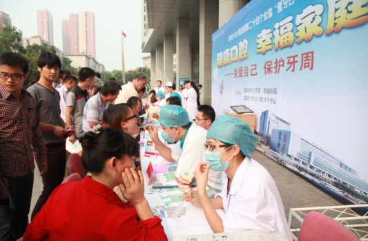 活动现场共十余名医护人员免费为群众进行口腔健康检查和咨询,并利用展板宣传口腔卫生知识,受到了市民的极大欢迎。