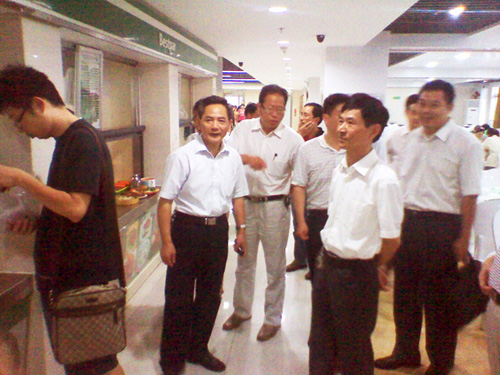 8月16日下午,学校常务副校长江敏、纪委书记孙爱和等一行,在党委副书记刘全礼、副院长鲁超陪同下,视察了我院投入使用的职工餐厅。