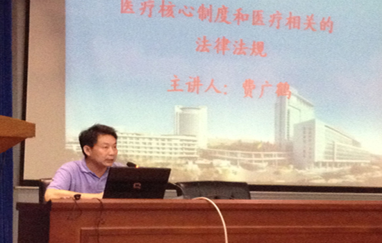 副院长李家斌首先对全体研究生进行了医德医风、学风和安全警示教育,党委书记梁朝朝教授、副院长费广鹤教授、大内科主任许建明教授、外科教研室主任刘弋教授应邀做专题学术报告。四位专家们分别从病史的采集与书写、外科无菌操作与换药的基本要领、核心医疗制度及医疗法规、医学论文的选题与写作等方面对研究生进行了深入系统的讲授。